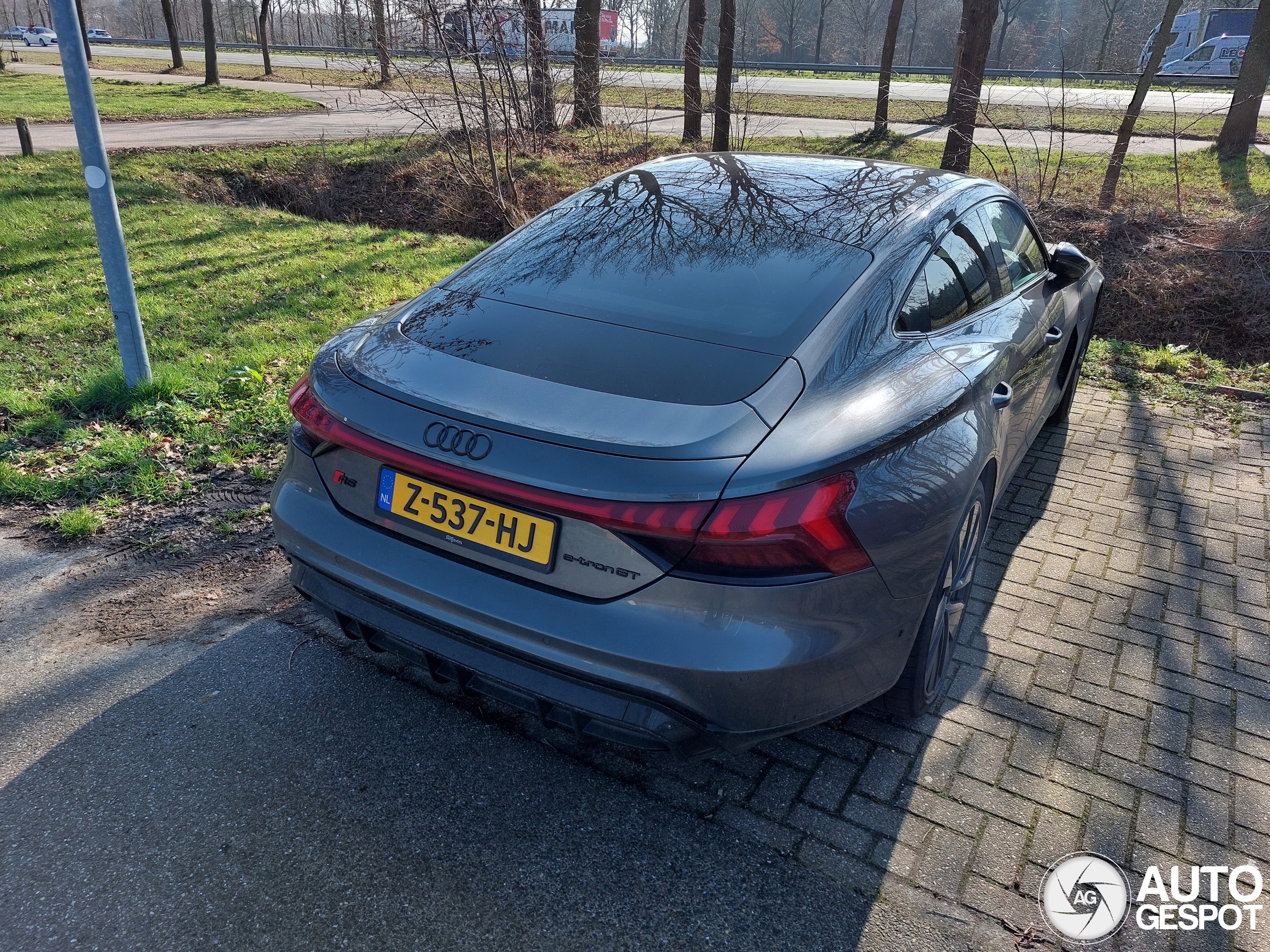 Gespot op 3 MAART 2026 Die dinsdag ochtend moest ik voor werk naar Bergen op Zoom, op de heenweg zag ik langs de snelweg bij Breda Airport deze toffe RS E-Tron GT staan, dan moet ik wel even de afslag nemen om hem te spotten voor het nieuwe pinnetje! Helaas is deze E-Tron niet heel spannend gespecd en hij had ook flinke velgschade, zonde om te zien! Deze komt nu voor de 4x online, leuk om te zien!